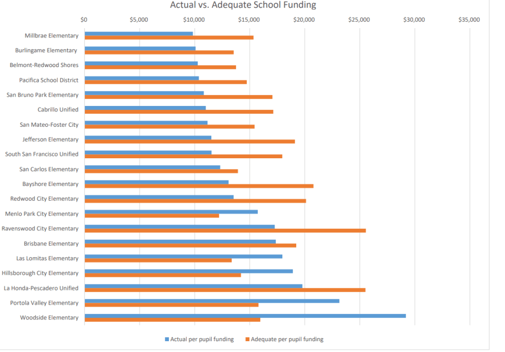 Pacifica is hardly alone in being significantly below the amount of school funding needed to provide an adequate education. Here is a graph of all of the elementary school districts in San Mateo County: